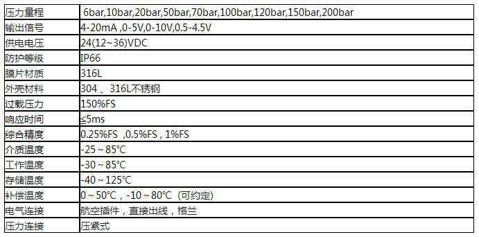 SDG-2503注浆压力变送器,内部采用高精度、高灵敏度及高稳定性电阻应变计作为变送器的感压芯片,配以高性能放大电路,从而保证整个变送器测量的准确性和稳定性。测量端选用特殊处理坚固的膜片,采用特殊工艺制成,精湛的力学传递结构设计被测介质中坚硬砂粒不会损坏隔离平膜片,经过数千次冲击和疲劳实验,适合多种恶劣的工作环境。产品为全封焊结构,结构紧凑、耐腐蚀,抗震动、抗坚硬砂粒冲击、宽范围温度补偿。